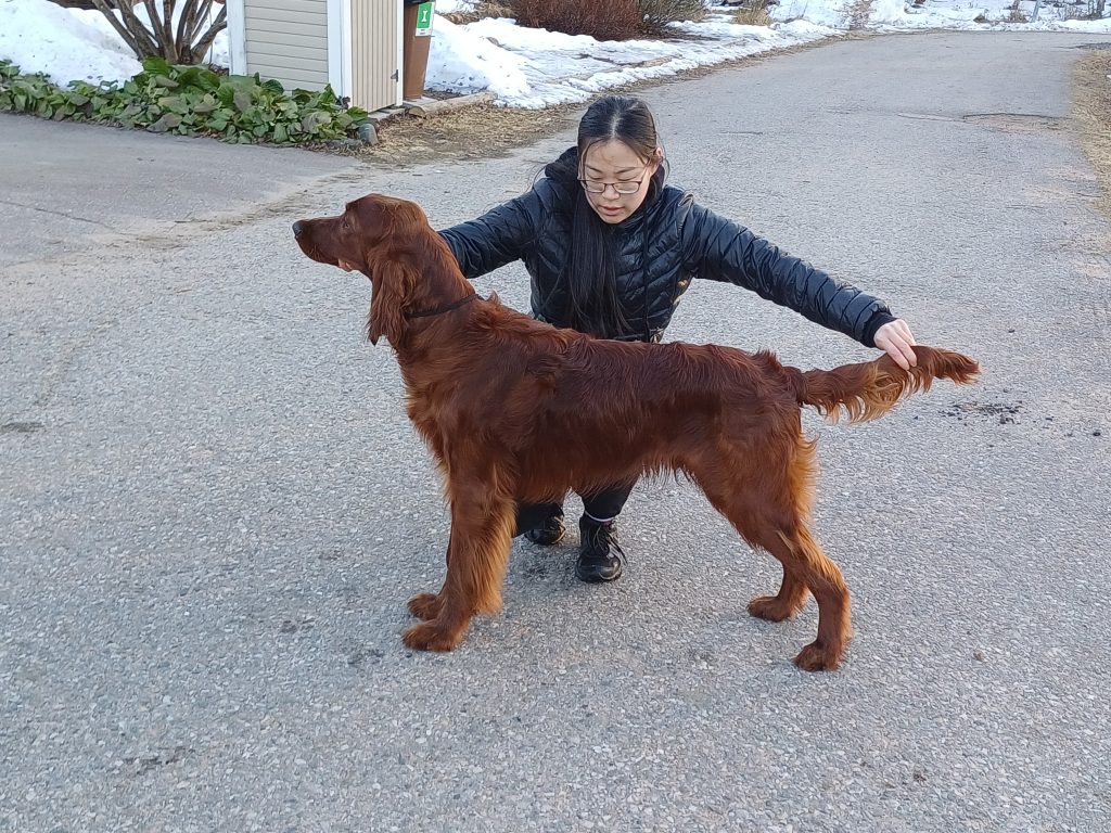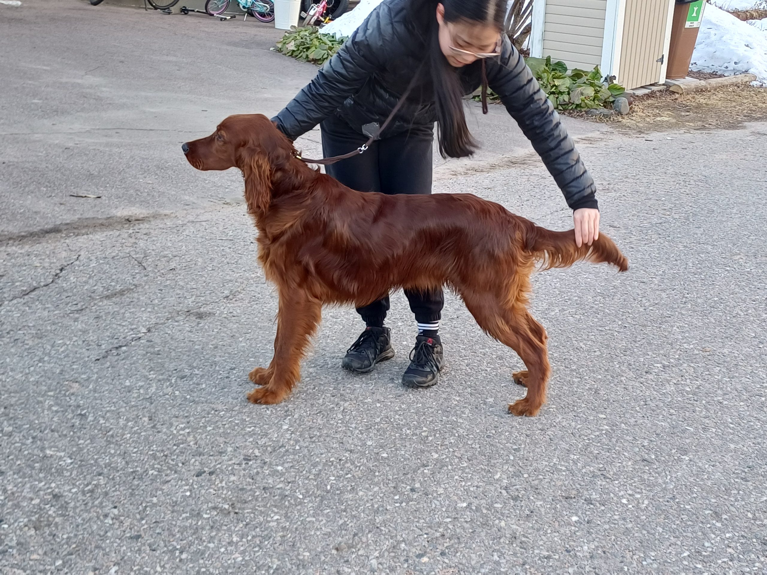 Maisa eli Red Lovehunter`s Fairytale on Joonaksen koira ja Maisa on kulkenut mukana näyttelyssä. Tyttö on F-pentueesta ja täyttää kesällä 5-vuotta. Maisa on kaikin puolin terve ja hyvähermoinen,tasapainoinen koira. Sodankylän näyttelystä vuonna 2023. Kivoja muistoja!